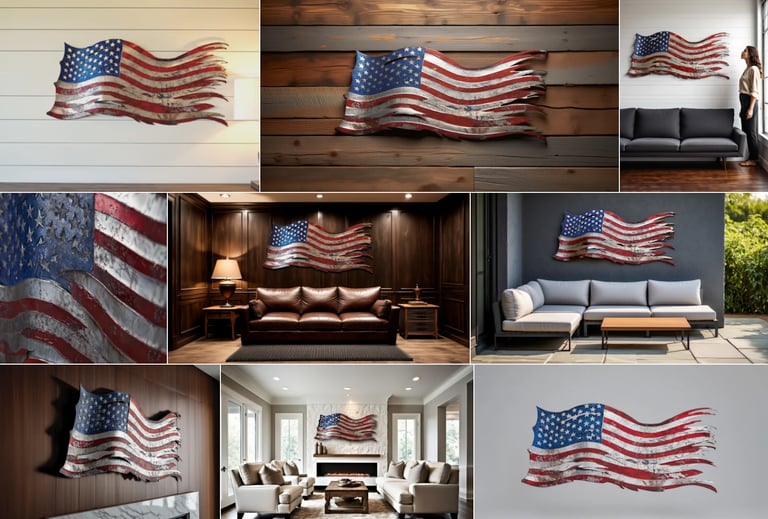 Elevate your home or office decor with this stunning distressed American flag metal wall art. Expertly crafted with wavy edges and a weathered finish, this piece brings a bold touch of patriotism and rustic charm to any space.