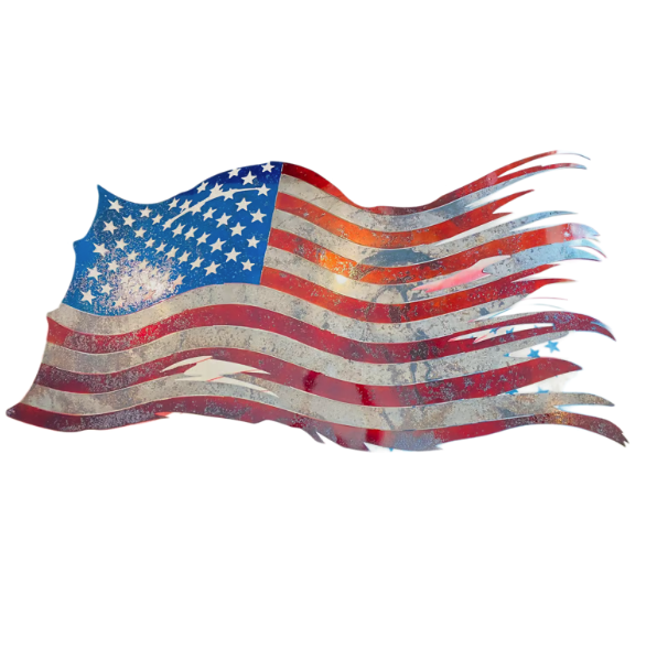 Elevate your home or office decor with this stunning distressed American flag metal wall art. Expertly crafted with wavy edges and a weathered finish, this piece brings a bold touch of patriotism and rustic charm to any space.